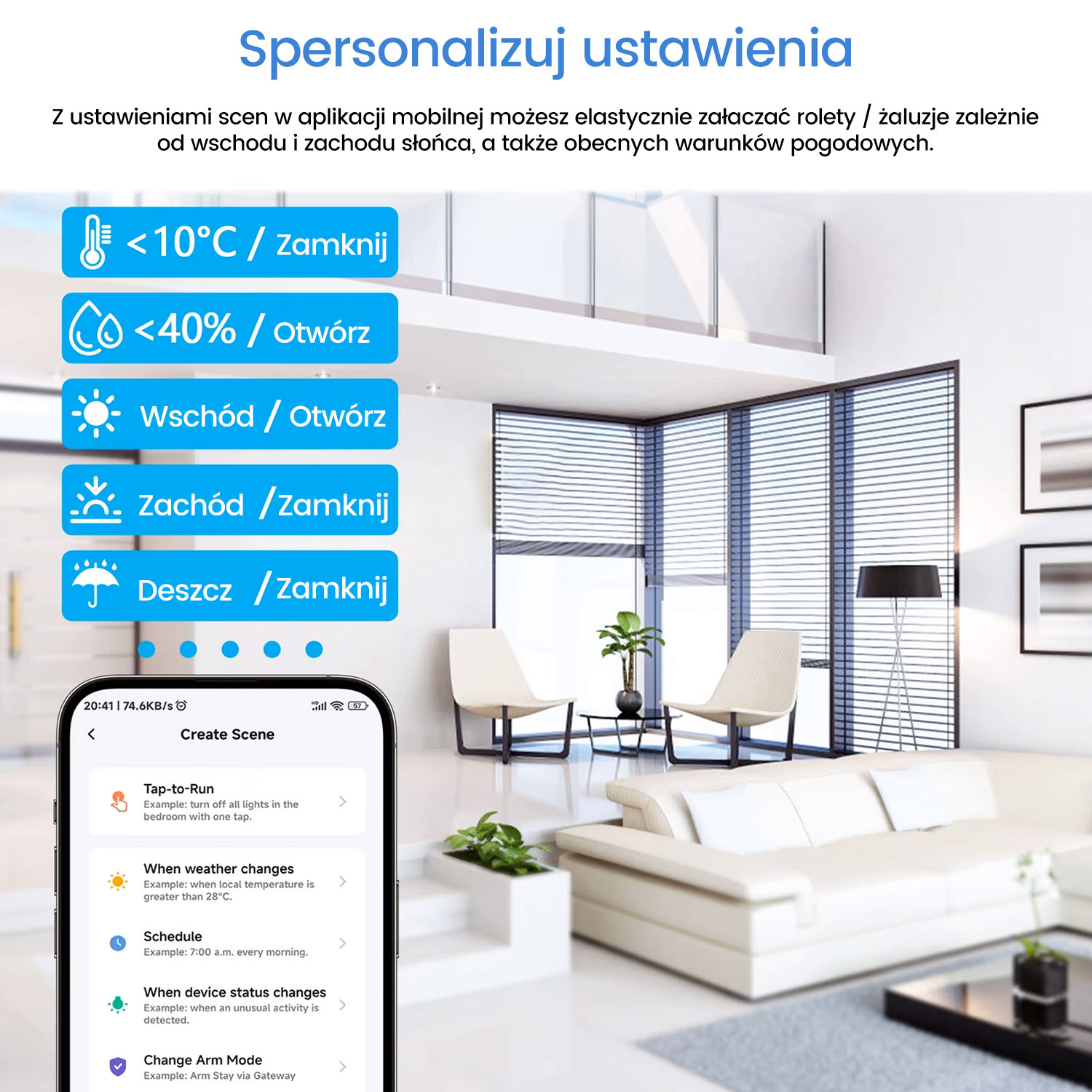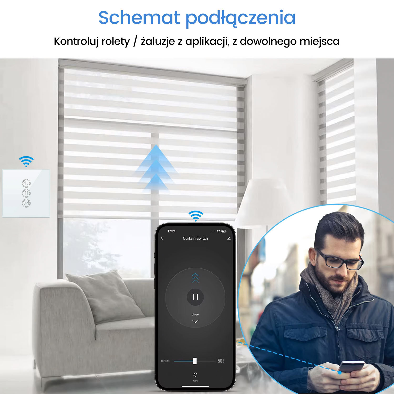 Kontroluj otwieranie i zamykanie rolet bez konieczności sięgania po telefon.