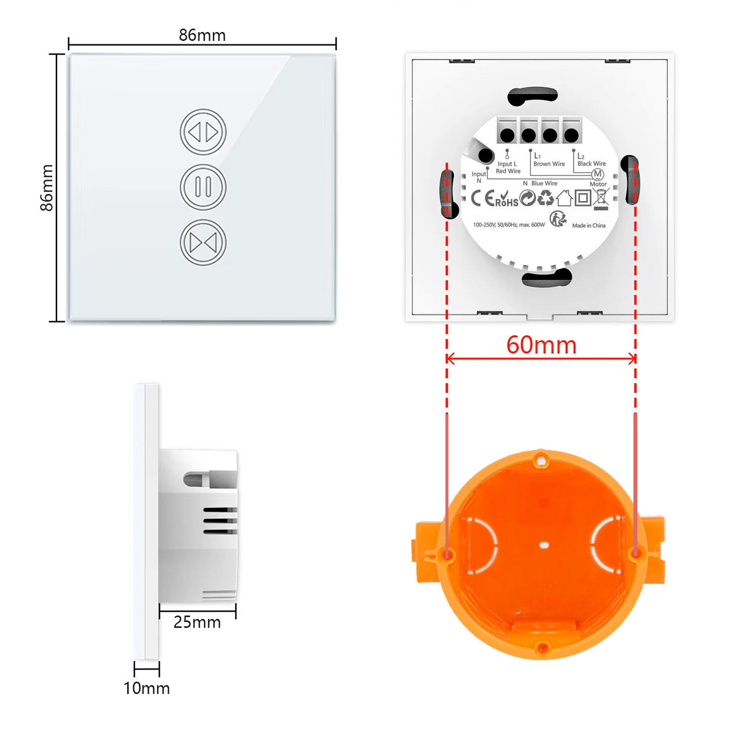 - Uchwyt ścienny: 80 × 80 mm