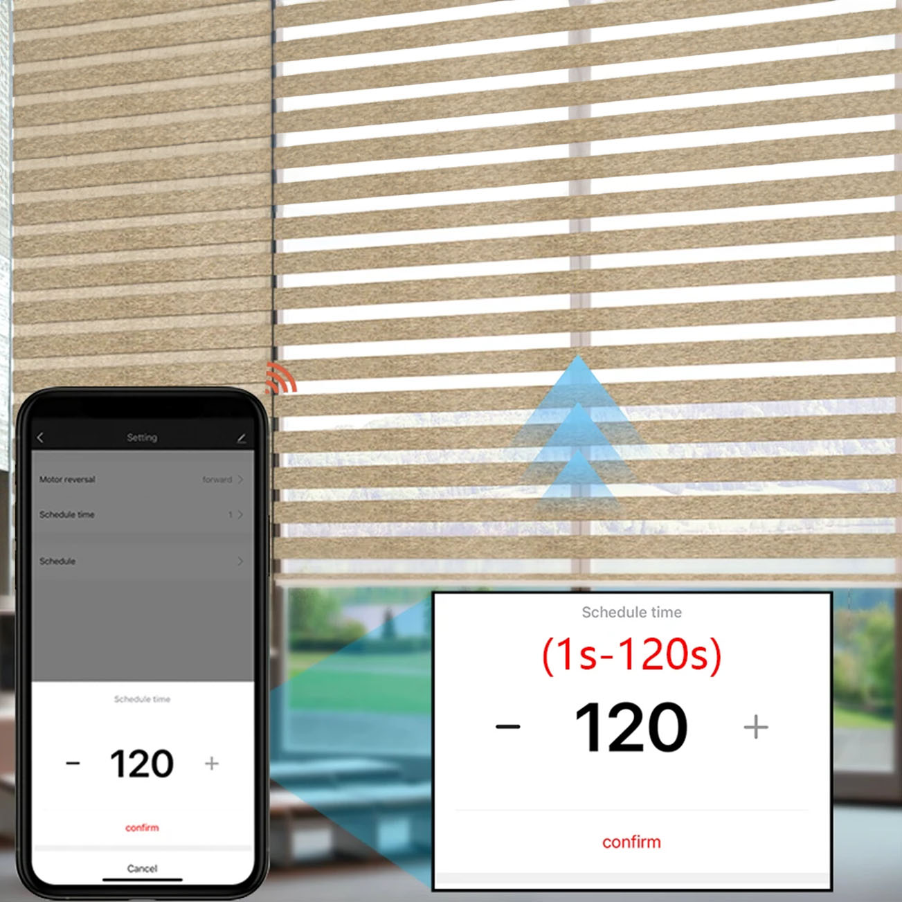 - Ustawienie czasu działania w zakresie od 1 do 120 sekund, odpowiedni do stosowania dużych żaluzji