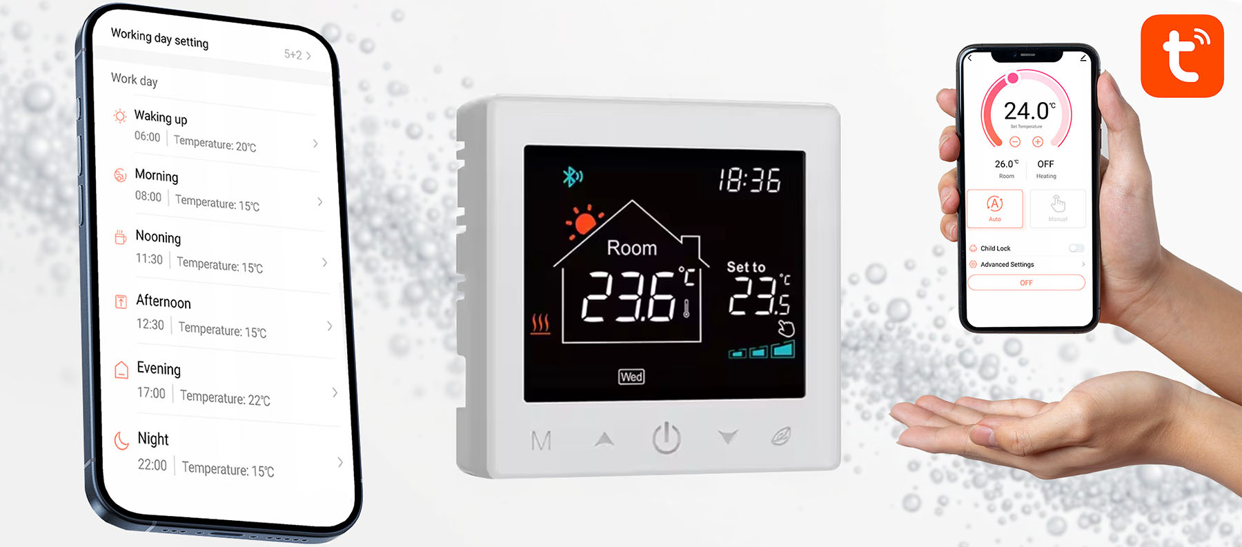 ✅ Zdalne sterowanie: Termostat posiada moduł WiFi, który umożliwia kontrolę urządzeń smartfonem w aplikacji Tuya na Android lub iOS