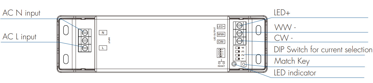 ☑️ Urządzenie posiada wbudowany zasilacz (zasilanie 230V) i pozwala na podłączenie lamp w zakresach napięcia od 10 do 42V. Posiada również ustawienie wartości mA (od 150mA - 450mA) przedstawione na schemacie w dolnej części oferty. Dzięki temu możemy dostosować odpowiednie wartości dla podłączonego oświetlenia.