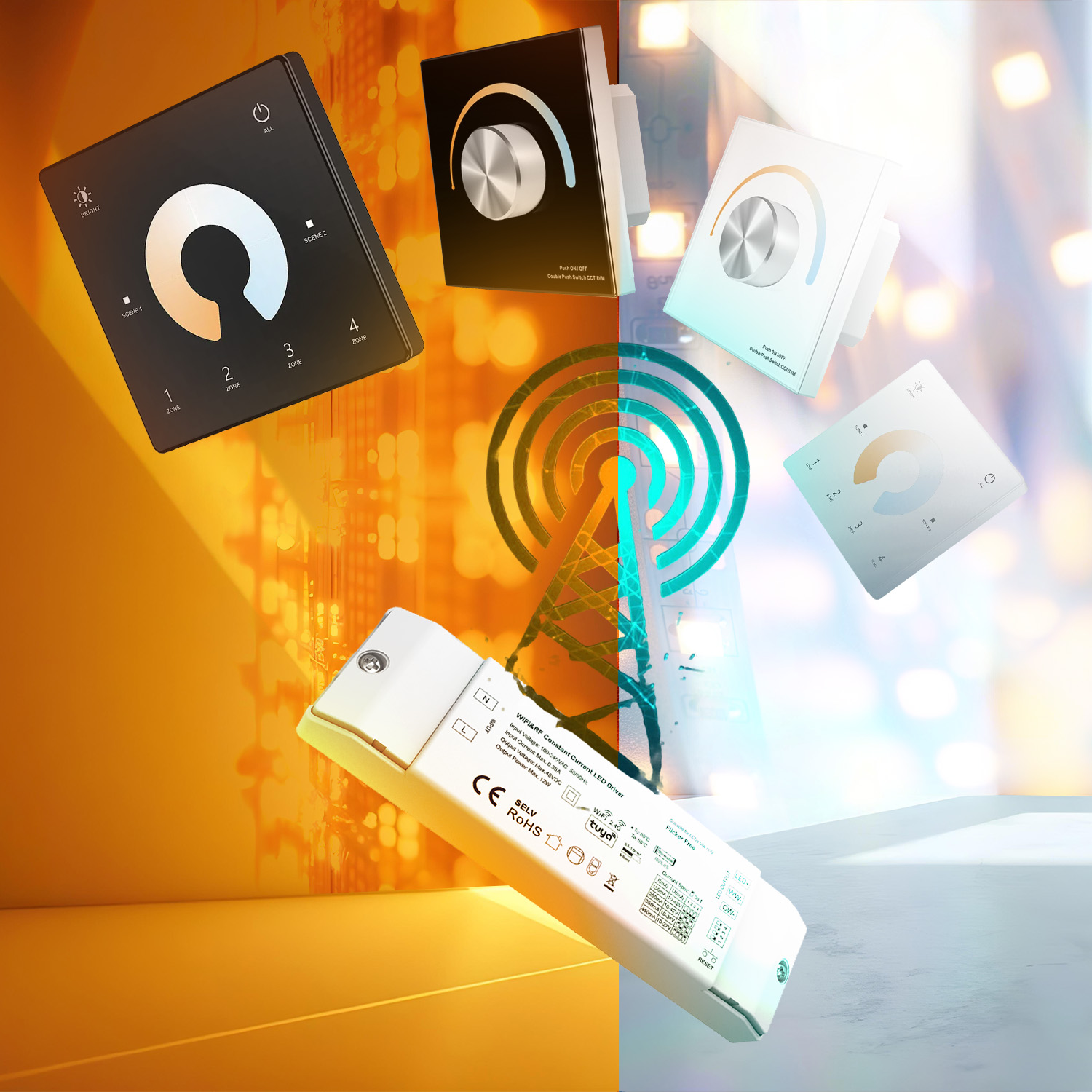 ➡️ Model z serii SD jest przeznaczony do lamp LED (zasilanych napięciem 10-42V) typu CCT, które pozwala na zmianę barwy światła z ciepłej poprzez neutralną do zimnej.