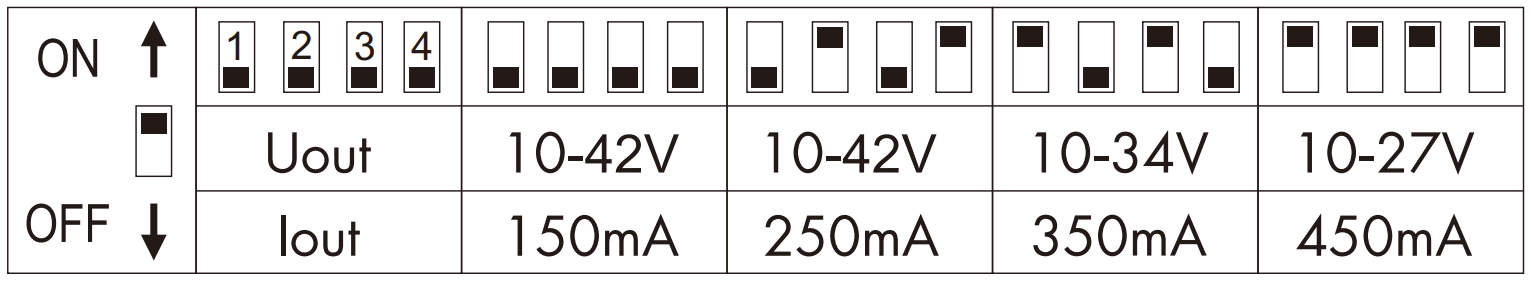 - Napięcie wyjściowe: 10~42V DC