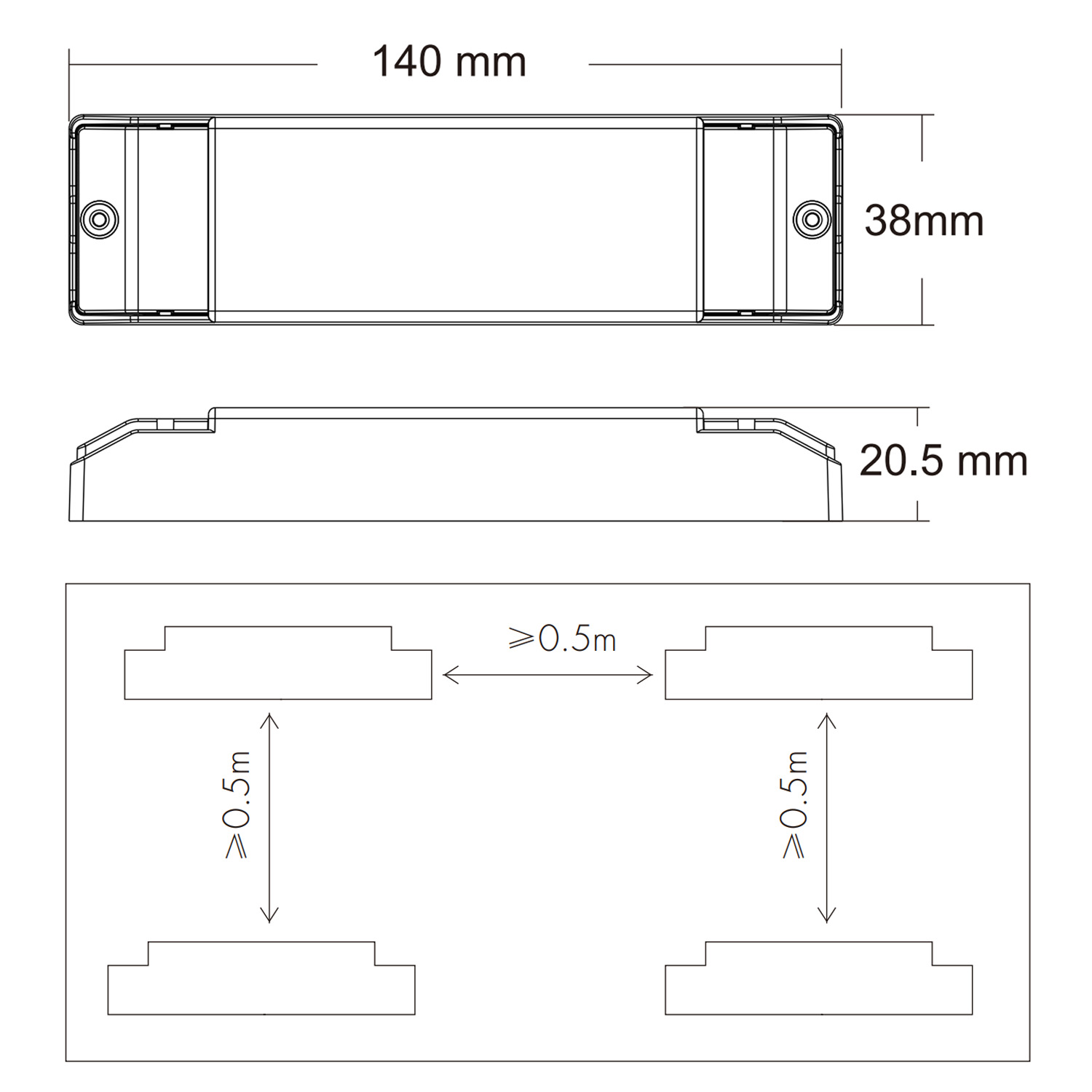 140 x 38 x 20.5 mm