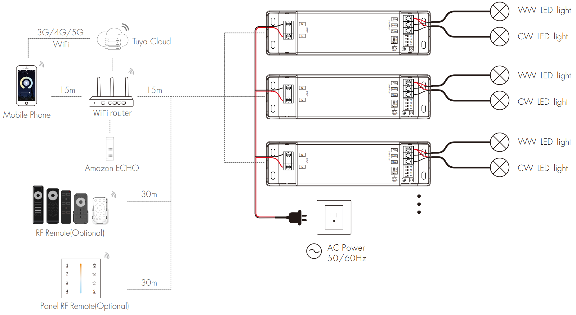 - Obsługiwane taśmy 3 PIN - CCT lub MONO WW CW