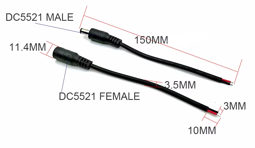 - Typ złącza: DC 2.1/5.5 mm (Wtyk męski + Gniazdo żeńskie)