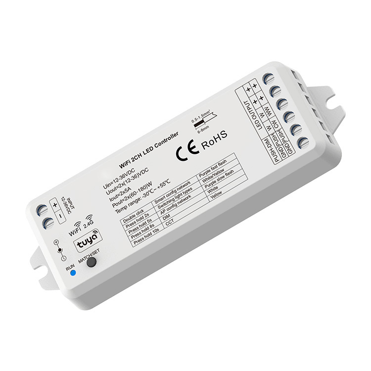 - Kontroler LED | MONO CCT | 2*5 A | 12-36 V | Seria SD | WiFi + RF | TUYA