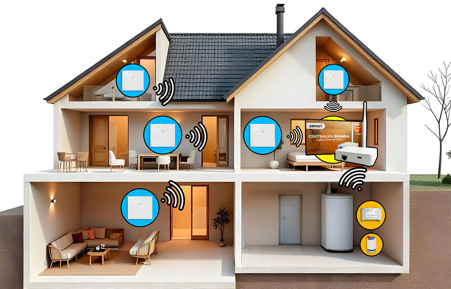 - Pełna swoboda: Współpraca z termostatami i czujnikami (brak w zestawie) umieszczonymi w dowolnym punkcie domu.